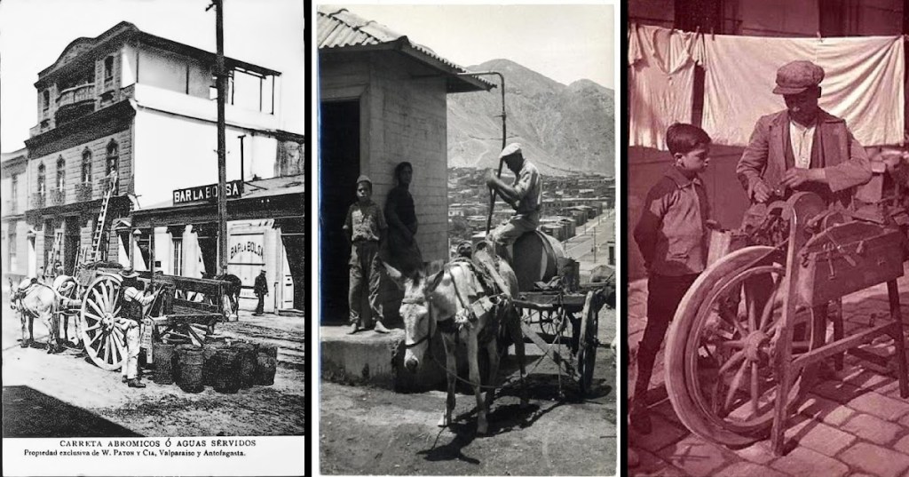Una pinturita, eran lecheros y panaderos en sus jardineras, recorriendo su clientela en forma diaria; los heladeros con sus barquitos, los maniceros con su máquina a vapor, los pescaderos, que llevaban el pescado de río con mucho hielo; algunos ofrecían leche de burra para combatir la tos convulsa; fabricantes de alfeñiques en cucuruchos de papel, manzanas confitadas, maceteros ofreciendo su producto elaborado; en noviembre, los vendedores de chivos vivos por las calles de la ciudad para las fiestas, las empanaderas y empanadilleras, la sabrosa aloja, vendedores de zapallos y choclos transportados en burros, vendedores de telas y casimires, que modistas y sastres convertían en elegantes prendas.