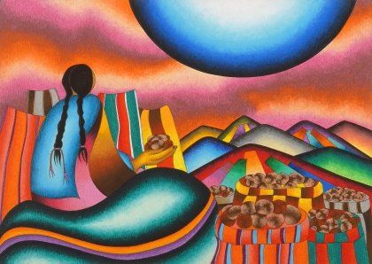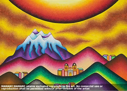 ROBERTO MAMANI MAMANI, quechua de nacimiento y de sangre aymara. Nace en Bolivia el 6 de diciembre de 1962. Artista autodidacta que ha desarrollado su plástica a partir de la visión y sentimientos originarios de su pueblo, una tierra vibrante, vital, llena de colores, carácter, texturas y emociones.