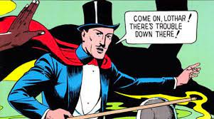 Mandrake el mago, apareció también en nuestras vidas, con su sombrero de copa, su pequeño bigote, su capa roja y su elegante vestido, acompañado de su amigo gigantón Lothar, que tradujeron como Lotario; su amiga Narda, y Therón, el padre de Mandrake.