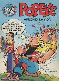 En los periódicos de entonces, pudimos solazarnos luego con las historietas de un marino llamado Popeye, del que supimos con posteridad, que deviene su nombre de Pop-eye, que significa: ojo tuerto; al que siempre le vimos su atractivo, al tratar de reproducir su dibujo. Nos encantó, además, su novia y esposa: Oliva, “flaca como un lamento” y la fuerza descomunal del héroe cuando come espinacas, su comida predilecta.
