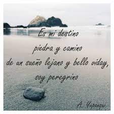 La composición reúne una serie de coplas de las que emana ese sentido profundo de su ser caminante y viajero. El inmenso significado de firmeza fuerza y eternidad al que nos remite la palabra piedra está referido a sus convicciones, a la pureza de su origen y sentimiento de pertenencia al mundo en su origen más natural.