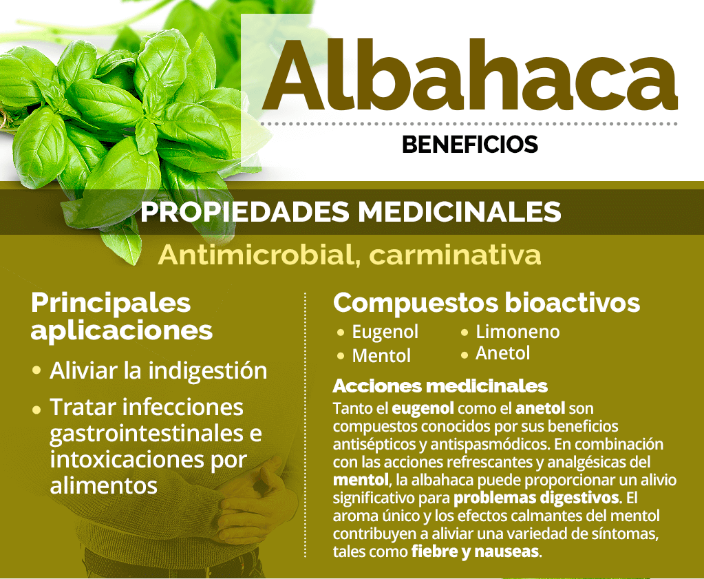La albahaca es una hierba aromática que se emplea tanto con fines culinarios como medicinales. Sirve para aliviar el malestar estomacal y calmar los nervios, y puede ayudar a combatir el insomnio y la fatiga física y mental.