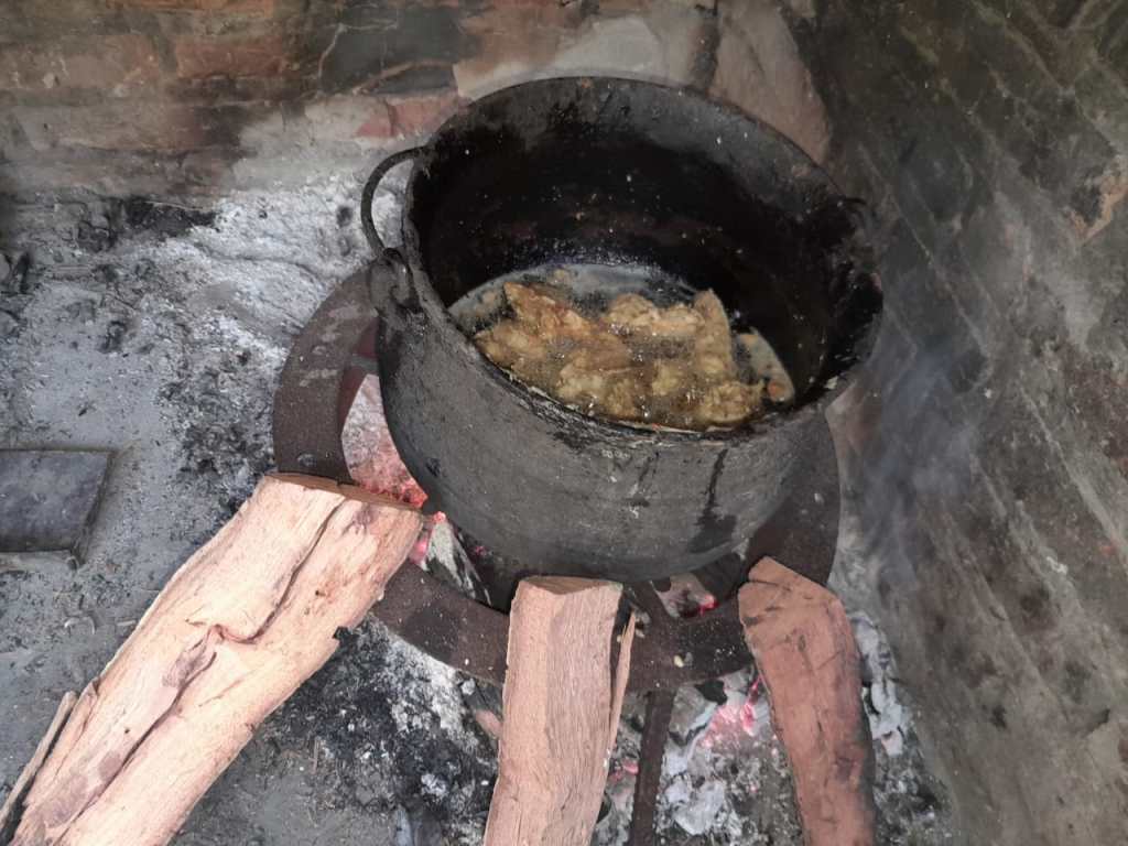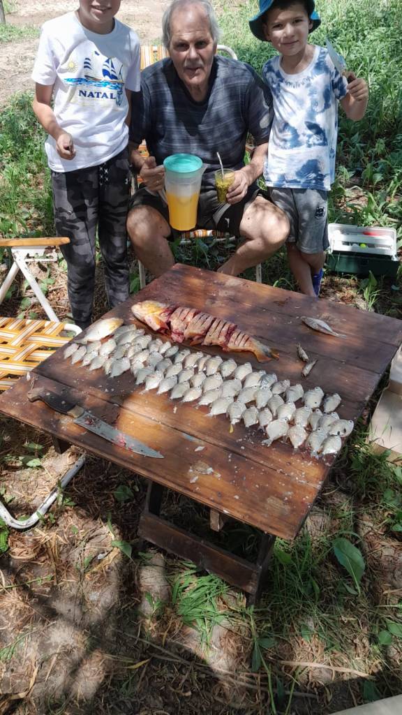 Luego de la pesca, nos prestamos a realizar el fueguito para poder comer lo pescado en la ollita de fierro junto con mis nietos…