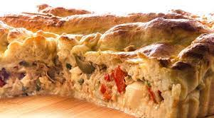 Mientras tanto preparamos el relleno, colocando un poco aceite en una cacerola, cortar las verduras en julianas e ir incorporándolas al aceite caliente, rehogar hasta que estén tiernas, agregar el tomate, cocinar unos minutos más, condimentar al gusto, retirar del fuego, agregar la caballa un poco desmenuzada y las aceitunas en fetas. Dejar enfriar.