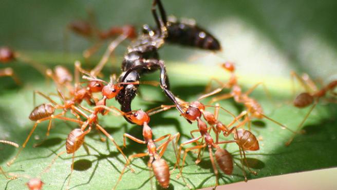 Pero no basta contentarnos con unos pocos ejemplos, ya que esta ley soberana, impele a todos los seres, sin excepción alguna a que luchen por su supervivencia, pues es muy clara la lucha entablada entre insectos como hormigas y termitas, por el control territorial y por el gobierno de sus súbditos, la enconada batalla entre las abejas y los avispones, aun cuando la superioridad de tamaño, implique para tal enfrentamiento, supusiera quién resultaría vencedor, ésta es ganada al final por los más pequeños, a causa de su cantidad y capacidad de trabajo.