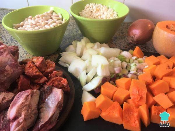 - 300 g huesitos de cerdo, salados (lavar bien para quitar el exceso de sal)-
