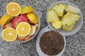 Para elaborar la miel, agregar en una olla dos membrillos cortados en cuartos, la mitad de una cáscara de piña (ananá), dos manzanas en cuartos, una cáscara de plátano, dos ramitas de canela, cuatro unidades de clavo de olor, cubrir por completo con agua. Cocínalos a fuego medio hasta que las frutas se deshagan. Luego, con ayuda de un cernidor, cuela el líquido y resérvalo.