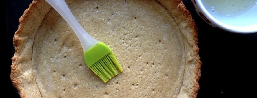 Después, la masa se estira con un rodillo y se forra el molde enmantecado, normalmente de tipo tarta rizada o tartaleta, de paredes bajas y fondo desmontable. Para que no crezca en el horno se suele pincha con un tenedor, y, si la receta lo requiere, se hornea en blanco. Esto consiste en cubrirla con papel de hornear, colocar uno peso encima (pueden ser porotos) y semicocerla unos minutos.