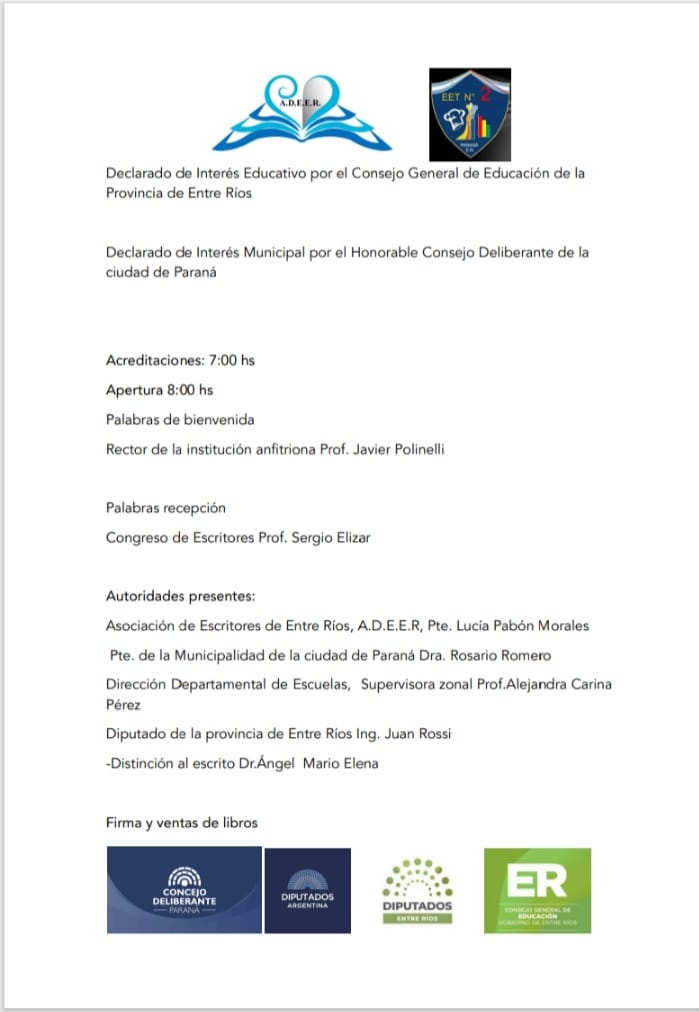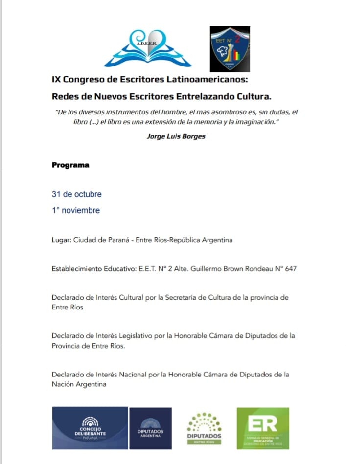 La Asociación de Escritores de Entre Ríos, organizo el IX Congreso Latinoamericano de Escritores durante los días 31 de octubre y 1 noviembre.