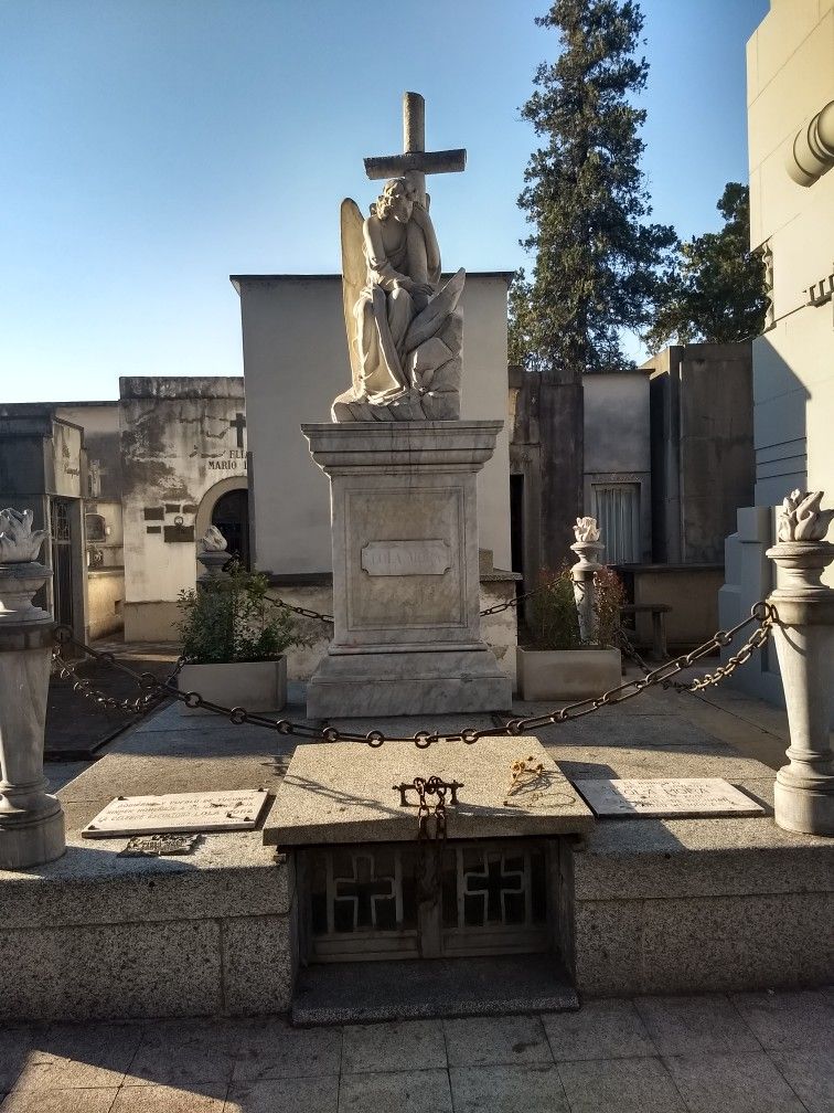 En Buenos Aires, otra de sus obras se encuentra en el acceso a la capilla de la bóveda de la familia López Lecube, sita en el Cementerio de la Recoleta. Son dos figuras realizadas en mármol: una en actitud meditabunda y otra mirando hacia el infinito. La polémica surge a raíz de que una de las figuras tiene el vestido caído en parte, dejando su hombro al descubierto, motivo por el cual las señoras de aquella época, una vez más, objetaron la obra, presentando un reclamo al Director del Cementerio. En el mismo solicitaban el retiro de la obra por considerarla “obscena», puesto que la obra no tendría que estar destinada a un lugar tan sacro.