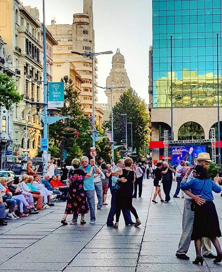 En el hall del palacio Salvo, se enteran de que allí funcionaba antes La Giralda, donde Roberto Firpo estrenó en 1917 “La cumparsita”, del uruguayo Gerardo Matos Rodríguez. En un libro se entera de que Michelini, periodista y político, y Gutiérrez Ruiz, diputado, ambos orientales sin pelos en la lengua, han sido asesinados en 1976 en Buenos Aires. No es casual que el poeta, que se exilió huyendo de la muerte encapuchada, viva entonces en la calle Michelini.