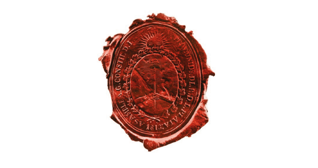 Art. 5° – En adelante se adoptará como representación del escudo argentino, la reproducción fiel del Sello que usó la Soberana Asamblea General Constituyente de la Provincias Unidas del Río de la Plata, el mismo que ésta ordenó en sesión de 12 de marzo de 1813, usase el Poder Ejecutivo.