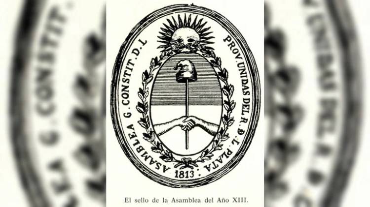 Este sello se convierte en el Escudo Nacional Argentino; elemento que se incorporaría a la Bandera Nacional Argentina.