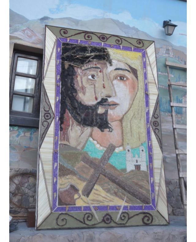 Las esquinas sorprendían con enormes cuadros con imágenes de alguna etapa del Vía Crucis. Todo dibujado y elaborado con colores destellantes, todo prolijito, todo en una perfecta armonía. El cuadro era un rey absoluto en cada esquina.