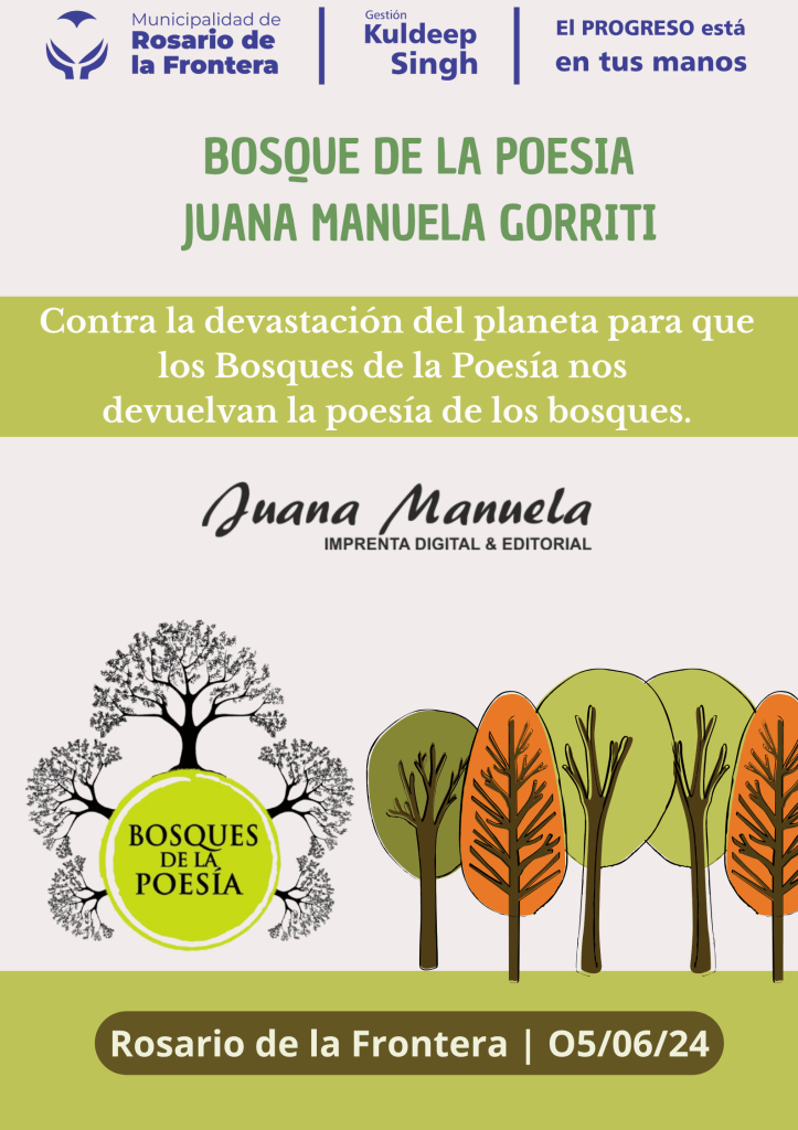 Con esta plaza “Bosque de la poesía”, se configura un nuevo ecosistema, conformado por los estudiantes que han aprendido sobre autores y sus obras; por poetas que han sido reconocidos y que hoy con su presencia saben que este lugar también es de ellos; de una fundación que nos brinda las plantas y que viene trabajando desde hace mucho en la protección del medio ambiente; autoridades que se sumaron a la propuesta, poniendo en valor la importancia de una ciudad verde; y nosotros que desde la editorial llevamos la bandera en alto de nuestra querida Juana Manuela Gorriti, una prolífica escritora salteña del siglo XIX, pionera de la literatura fantástica argentina, precursora en la lucha por los derechos de la mujer y de los pueblos originarios, nacida en estos pagos, en Horcones, departamento de Rosario de la Frontera.