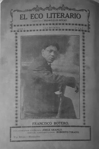 Francisco Botero, fue un poeta caldense. Nació en la ciudad de Manizales, en el año de 1897, y falleció el 10 de marzo en 1938. La Imprenta Departamental de Caldas, publicó su libro Frutos de lucha.