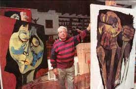 “Las primeras cosas que ya empiezo a ver con mis ojos de niño son estas estampas de bombardeos, de barcos que se hunden, de aviones que bombardean ciudades, de ahogados, de ahorcados, de fusilados y esto no ha parado absolutamente. Me gradúo en la Escuela de Bellas Artes; según el discurso del director, jamás había pasado por la escuela un alumno como yo. Al año exacto, hago mi primera exposición y es todo lo contrario a lo que aprendí en la escuela. Empiezo a hacer unos cuadros enormes de angustias terribles y esto fue una sorpresa muy grande, no quiero decir para el mundo, para mi país tal vez”, murmura.