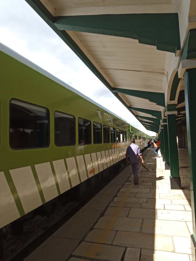 El tren una vez más, ese gran punto conector entre pueblos y ciudades, desde la montaña al mar. Aquí el Tren Patagónico atraviesa toda la Estepa Patagónica con sus vagones verdes y blancos y sus letras pintadas. Va cayendo la tarde y avanzando la nieve y los vidrios empañados en medio de estaciones sumidas en el silencio.