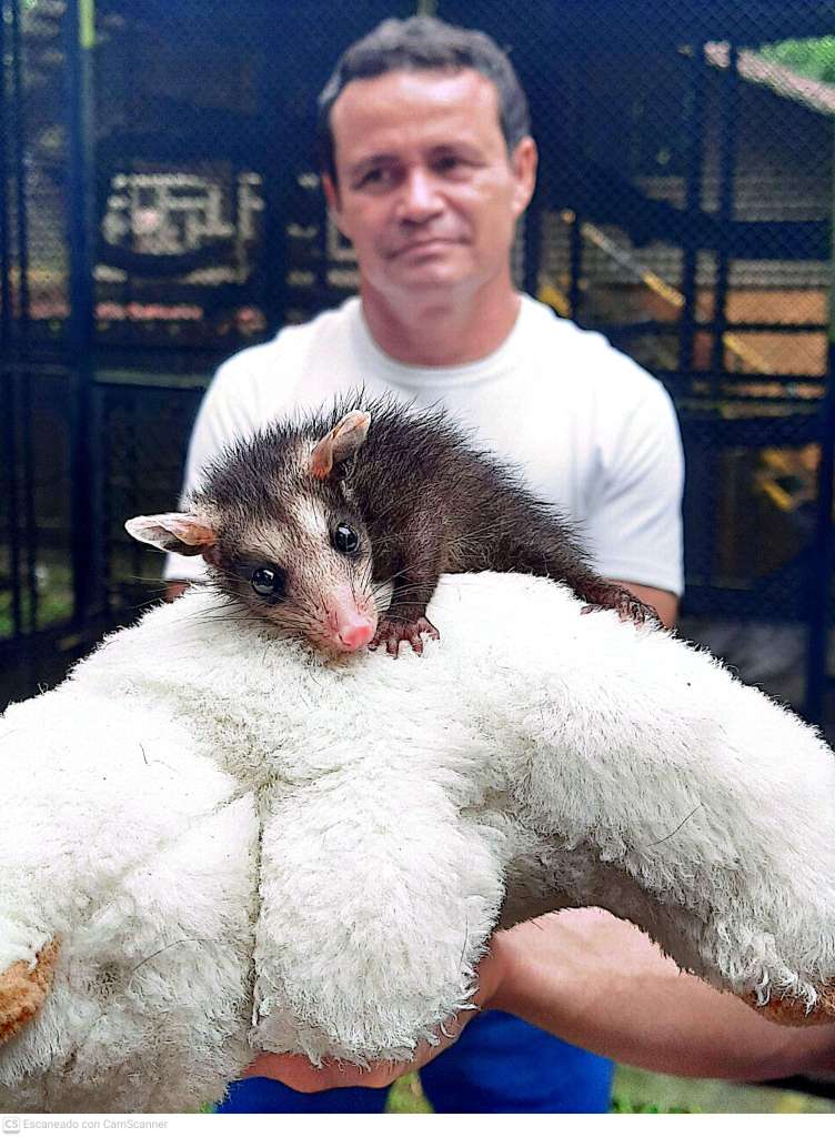 Otra de las criaturas que nos sobrecogió fue un puma que estaba flaco y enfermo que tenían bajo su cuidado. Otra más, una zarigüeya pequeña y que parecía estar en indefensión. Se había extraviado del cuerpo de su madre y recogida para ser cuidada en el centro de protección. La tenían sobre un peluche donado para que sirviera de nido para que no extrañara a su madre. Nos miró con esa ternura inherente a un tímido animalillo.