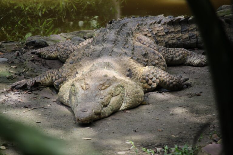 Y dentro de pequeños lagos artificiales, alrededor de siete cocodrilos, dormían muellemente abrasados por el calor de la luz del Sol.