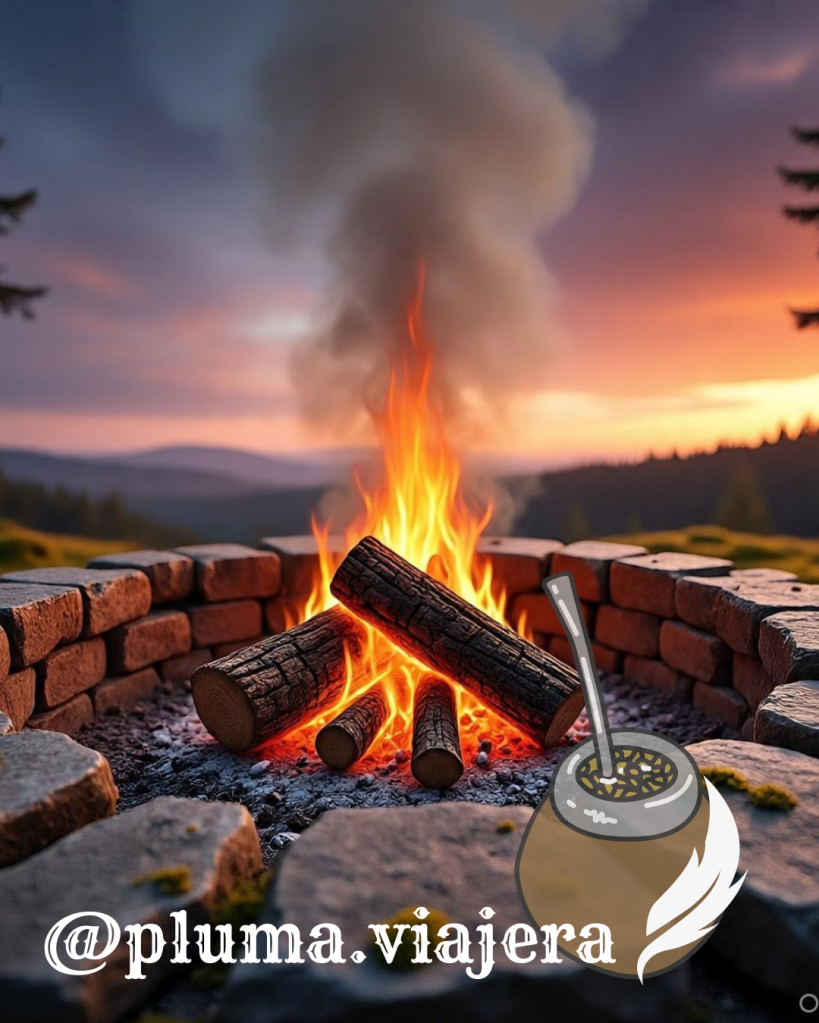 En el centro de una ronda que parece abrazar al mundo, la veo. Liliana está sentada sobre una piedra plana, con esa mirada mansa que parece conocer todos los secretos de la tierra. A su lado, Kush retira del rescoldo un pan recién horneado cuyo aroma es, en sí mismo, una bienvenida. No estamos solas. La sombra protectora de Dulkancellin y la presencia vibrante de Kupuka completan el círculo. Saco mi mate de algarrobo y dejo que el fogón dicte las palabras.