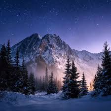 El sol empieza a asomar tras los picos nevados.