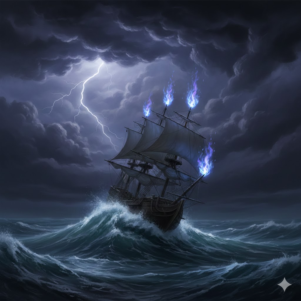 El Capitán levanta la vista hacia la arboladura. Allí, en la punta del mástil, no ondea ninguna bandera; en su lugar, brota un fuego azul que no quema. Es el Fuego de San Telmo, vistiendo de melancolía la derrota de los Templarios. Para el resto del mundo, quizás es una señal de peligro; pero Guillaume sostiene su luz, la que le da calor interno, la que lo guía como una antorcha permanente, que se propone compartir y atizar para que no se apague.