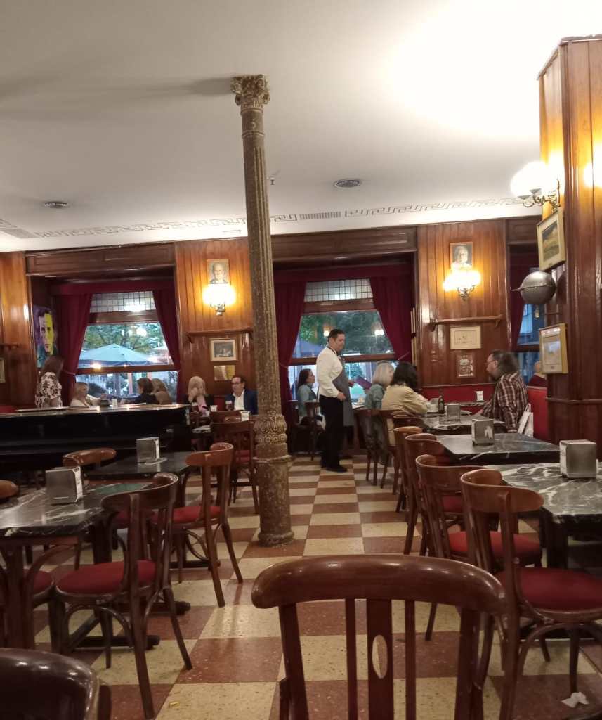 Los famosos Cafés “ Gijón”, El Comercial”o” El Pombo”, evocan las tertulias de Ramón Gómez de la Serna, Gerardo Diego, Camilo José Cela o del célebre maestro del joven Borges, Rafael Cansinos Assens.